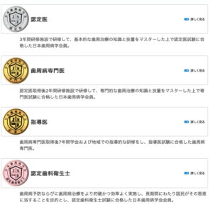 日本歯周病学会の学会員の方が習得できる制度でそれぞれで習得資格が異なります。